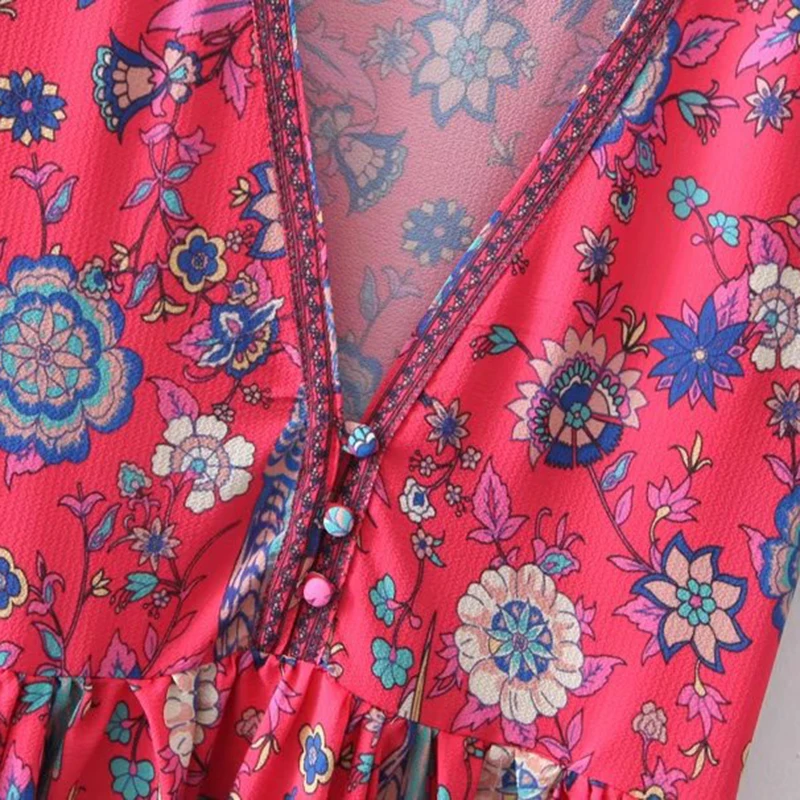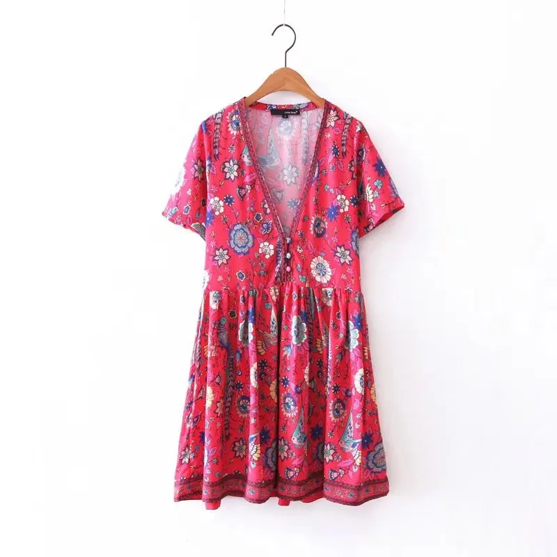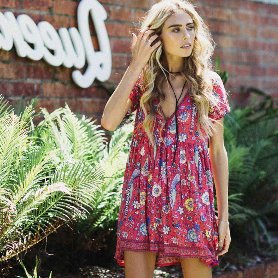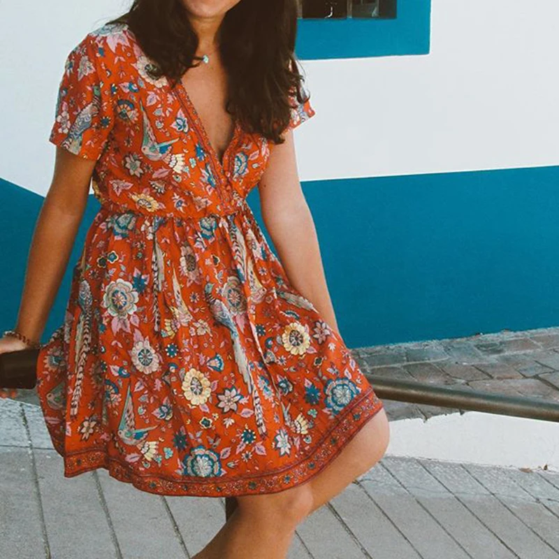 Special Offer Imprimé Floral bohème Mini robe été courte profonde col en v Sexy mousseline de soie Hippie Chic Style Vintage vacances plage robes femmes Discount 37% Today!