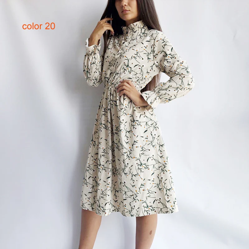 Special Offer Hiver velours côtelé imprimé Floral femmes taille élastique automne hiver robe col montant robe de plage robes de fête femme de haute qualité Discount 39% Today!