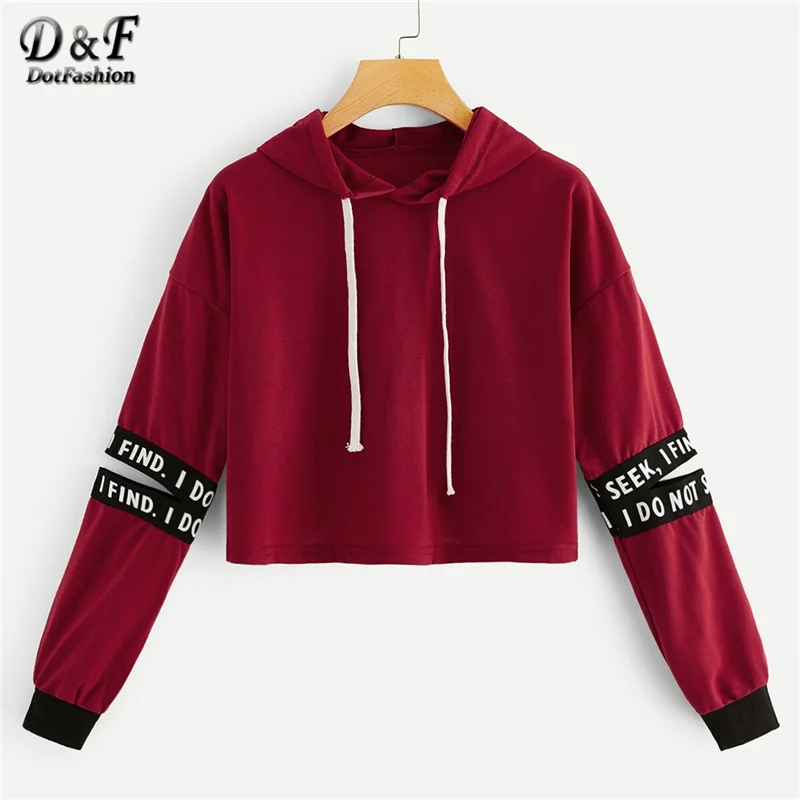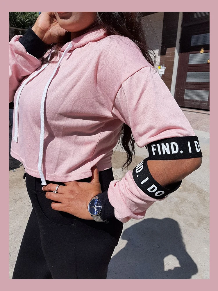 Special Offer Dotfashion rose lettre sweat à capuche avec cordon découpé manches sweat shirt femmes décontracté automne vêtements à capuche à manches longues pull Discount 40% Today!
