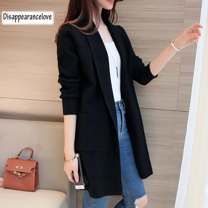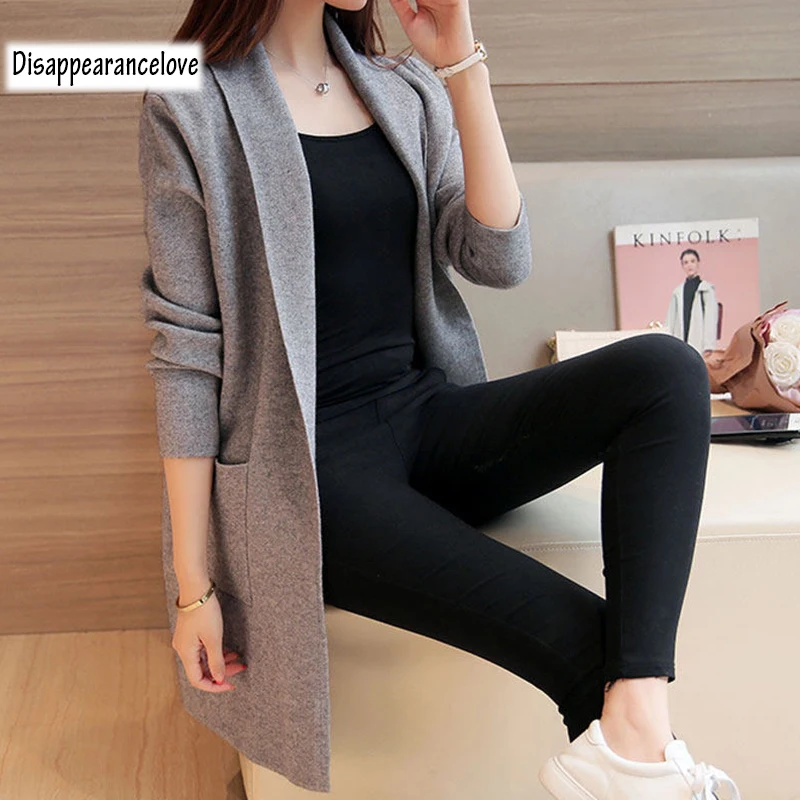 Special Offer DRL femmes automne hiver Long Cardigan chandail 2019 nouveau à manches longues tricoté Cardigan vêtements de dessus pour femmes manteau poche chandails Discount 41% Today!