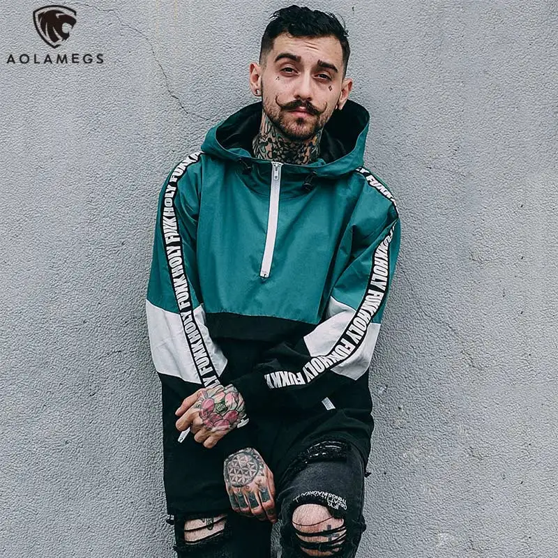 Special Offer Aolamegs hommes Hoodies mode Harajuku lâche capuche hauts coupe vent jeunes Couple contraste couleur Hip Hop haute rue porter pull Discount 49% Today!