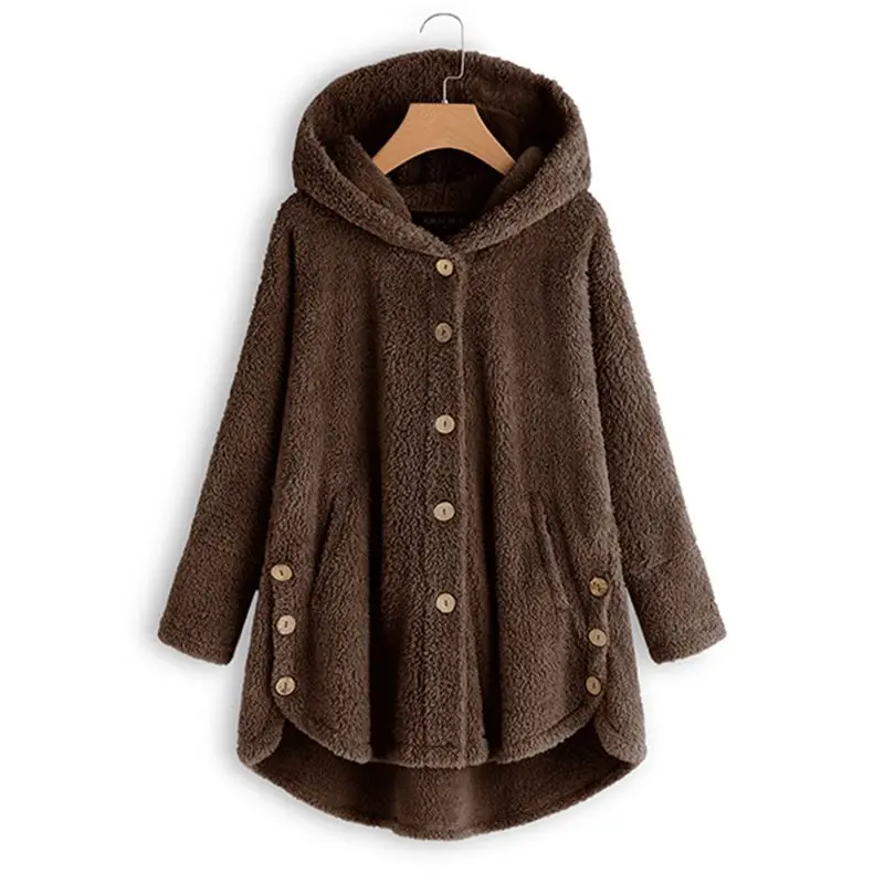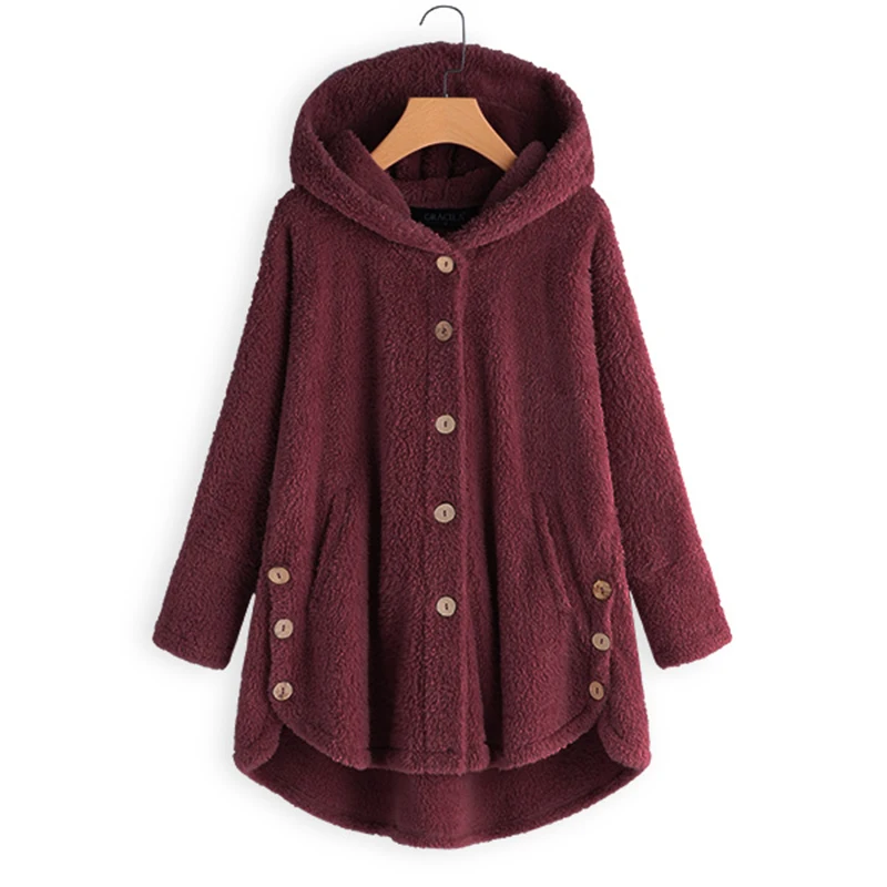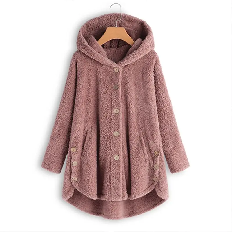 Special Offer 2019 grande taille hiver femmes décontracté solide à capuche à manches longues bouton fendu fête chaud moelleux vestes manteaux Outwear femme Discount 50% Today!