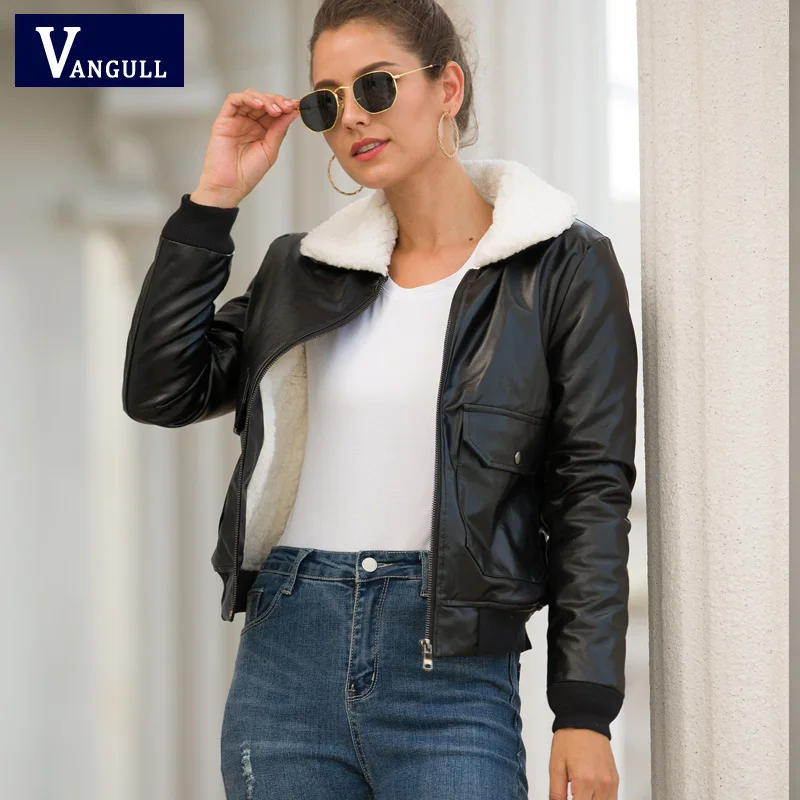 Special Offer Vangull hiver femmes Pu cuir manteau col rabattu fermeture éclair veste chaude automne décontracté Imitation fourrure cuir manteau Outwear Discount 57% Today!