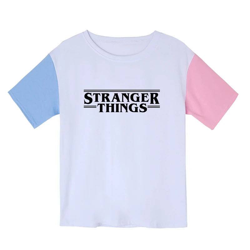 Special Offer Hommes d été T Shirt étranger choses coton lettres imprimé T shirt femmes Couple amant unisexe Patchwork Hit couleur hauts livraison directe Discount 29% Today!