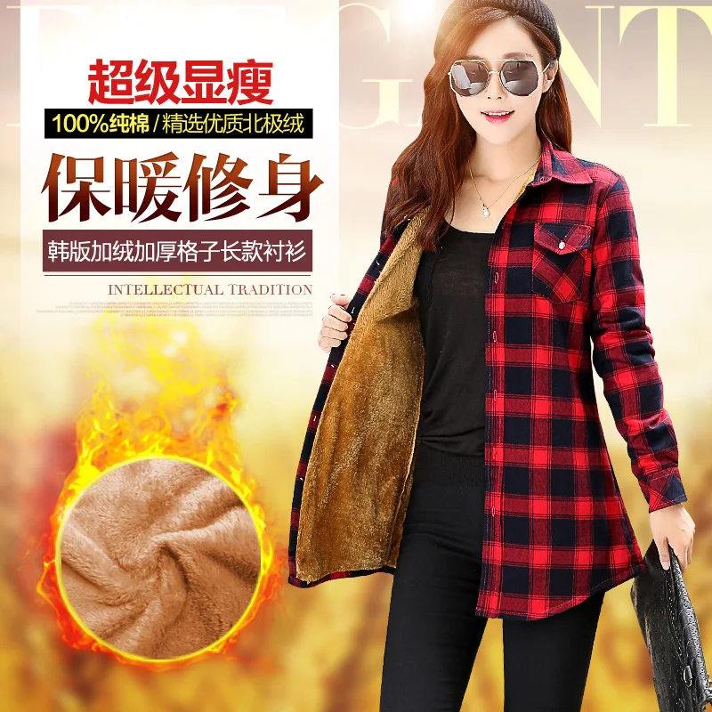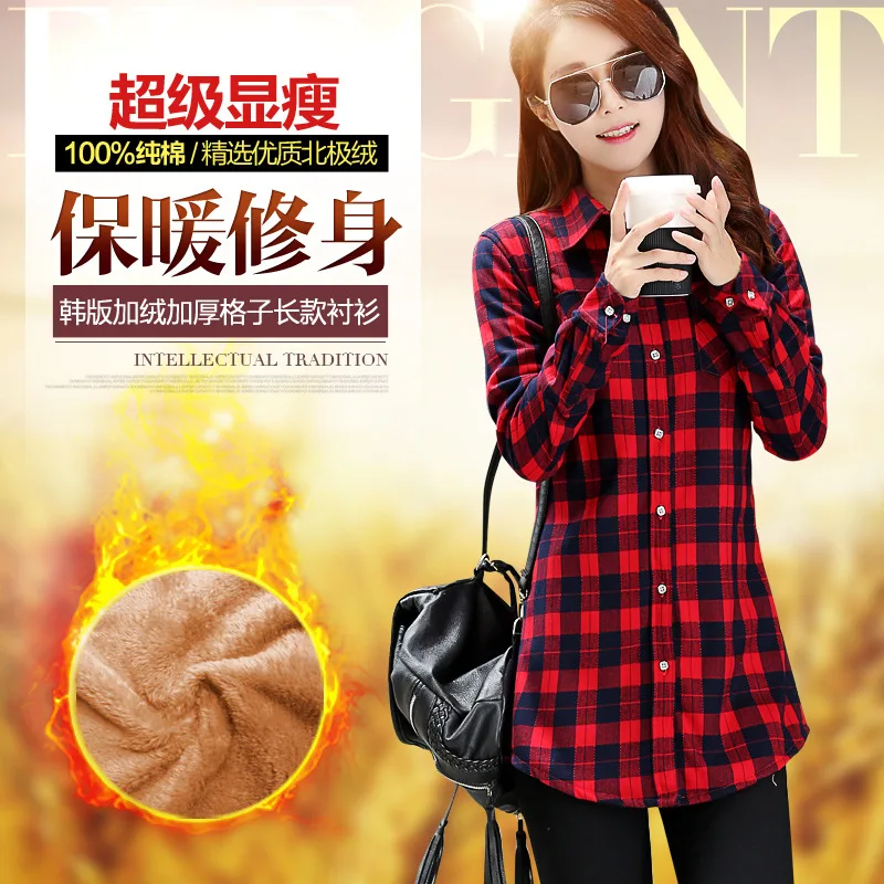 Special Offer Lossky hiver velours Blouse épais garder au chaud coton chemises femmes à manches longues rouge Plaid chemise 2018 mode Blouse décontracté travail hauts Discount 30% Today!