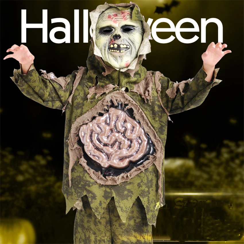 Special Offer Enfants Halloween Costumes effrayant Zombie marais monstre Cosplay Costume enfants fête carnaval vert dégueulasse vêtements chapeaux Discount 39% Today!