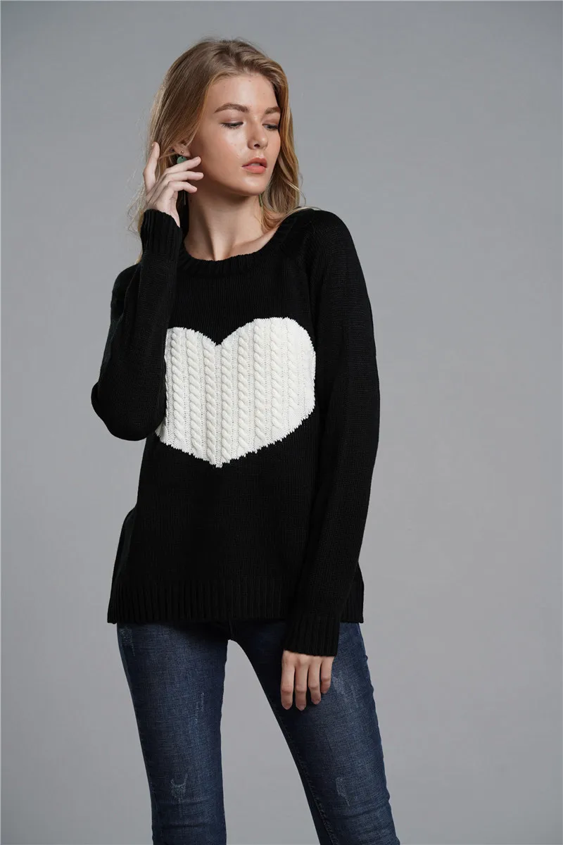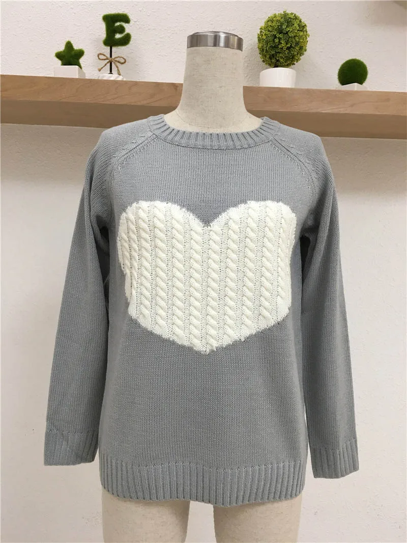 Special Offer Fitshinling coeur patchwork dame chandail décontracté slim pull femme vêtements tricots automne hiver mignon chandails pour les femmes Discount 40% Today!