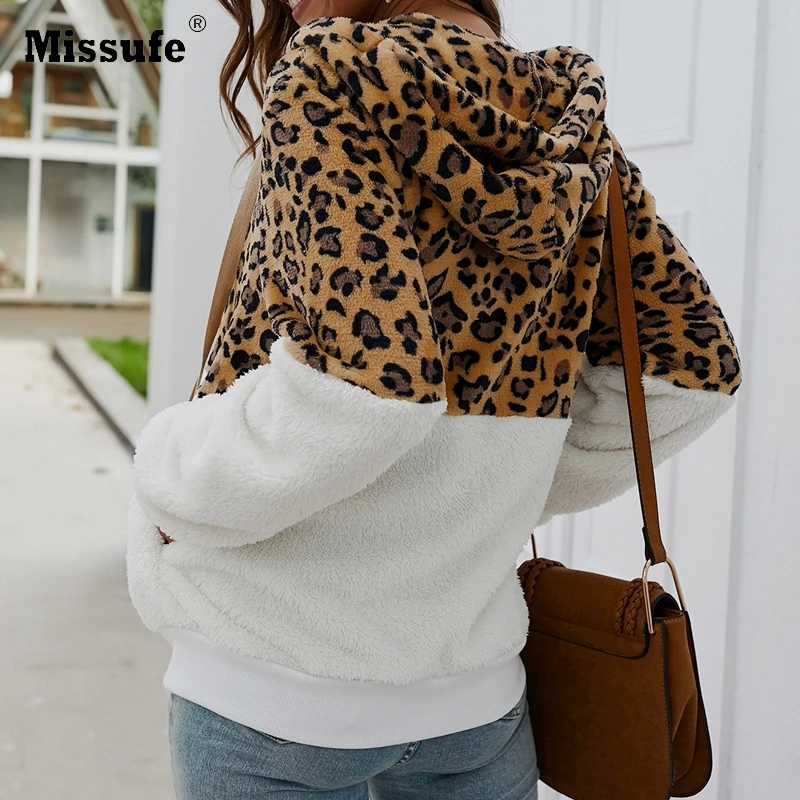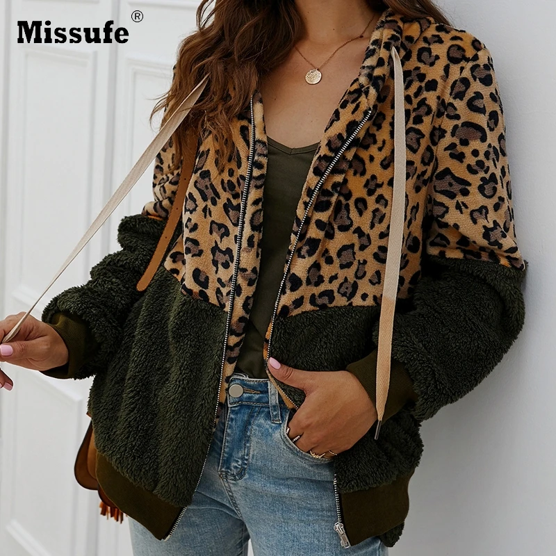Special Offer Missufe femmes hiver veste manteau mode fausse fourrure veste en peluche léopard poche à glissière Outwear femme vestes décontractée automne 2019 Discount 40% Today!