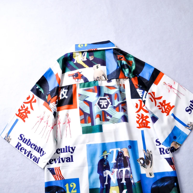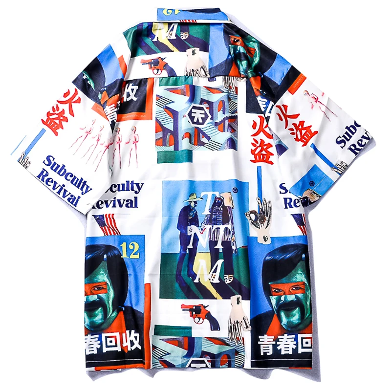Special Offer OSCN7 imprimé chemises hommes rue manches courtes 2019 été mode plage hommes Chemise lâche décontracté corée Chemise Homme 661 Discount 40% Today!