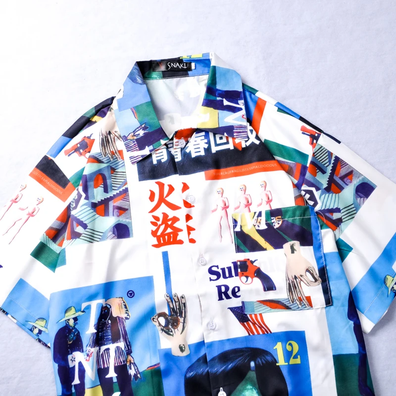 . (40% Off) Achat OSCN7 imprimé chemises hommes rue manches courtes 2019 été mode plage hommes Chemise lâche décontracté corée Chemise Homme 661 Pas Cher En Ligne.