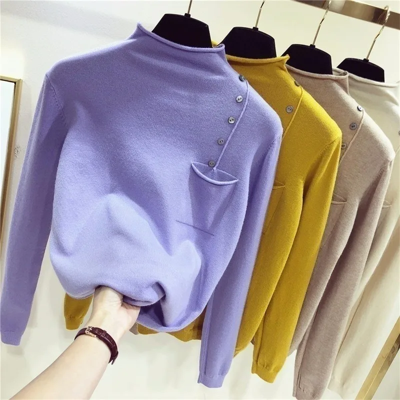. (43% Off) Achat Demi col roulé à manches longues tricoté pull haut pour femme slim manches courtes 5 couleurs 2019 nouveaux arrivants Pas Cher En Ligne.