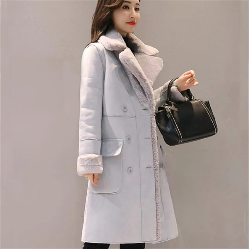 Special Offer Nouveau femmes Long manteau automne hiver chaud velours épaissir Faux daim manteaux Parka femme solide Double boutonnage veste Outwear AB691 Discount 55% Today!