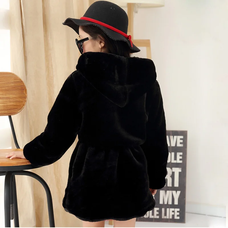 Special Offer Filles fausse fourrure manteau hiver à manches longues à capuche veste chaude Imitation lapin fourrure Long manteau pour enfants 8 13 ans doux Outwear CL1043 Discount 23% Today!