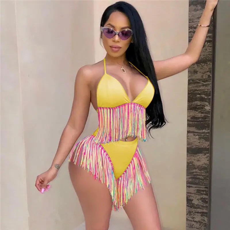 . (30% Off) Vente ZJFZML glands colorés été deux pièces ensemble femmes licou col en V dos nu haut court + violet haut Wiast court Sexy 2 pièces tenues Pas Cher Prix.