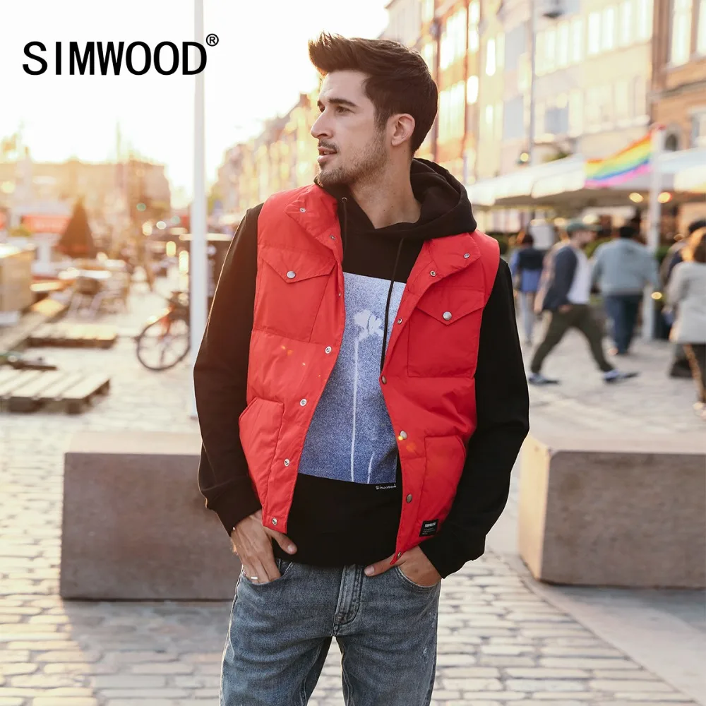 Special Offer SIMWOOD gris canard vers le bas gilet hommes 2019 automne hiver nouveau chaud sans manches vestes mode Slim Fit manteaux de haute qualité 180380 Discount 49% Today!