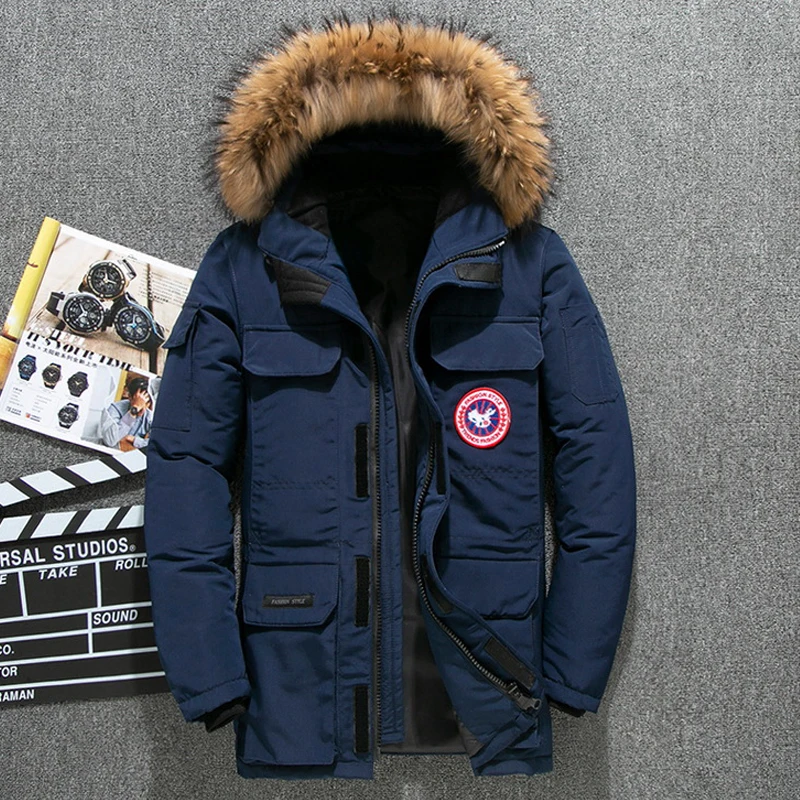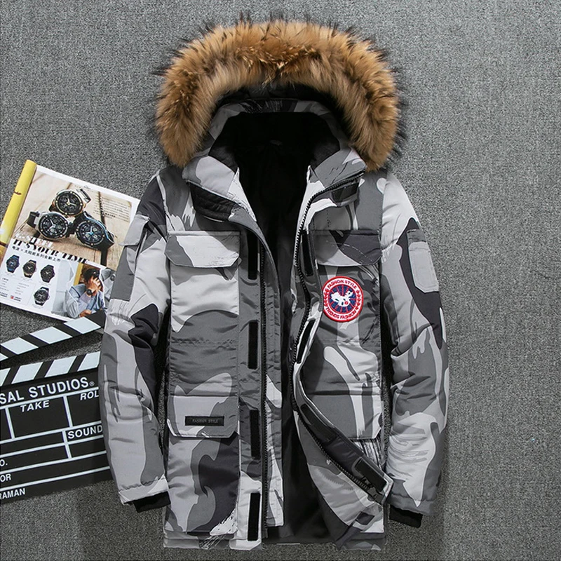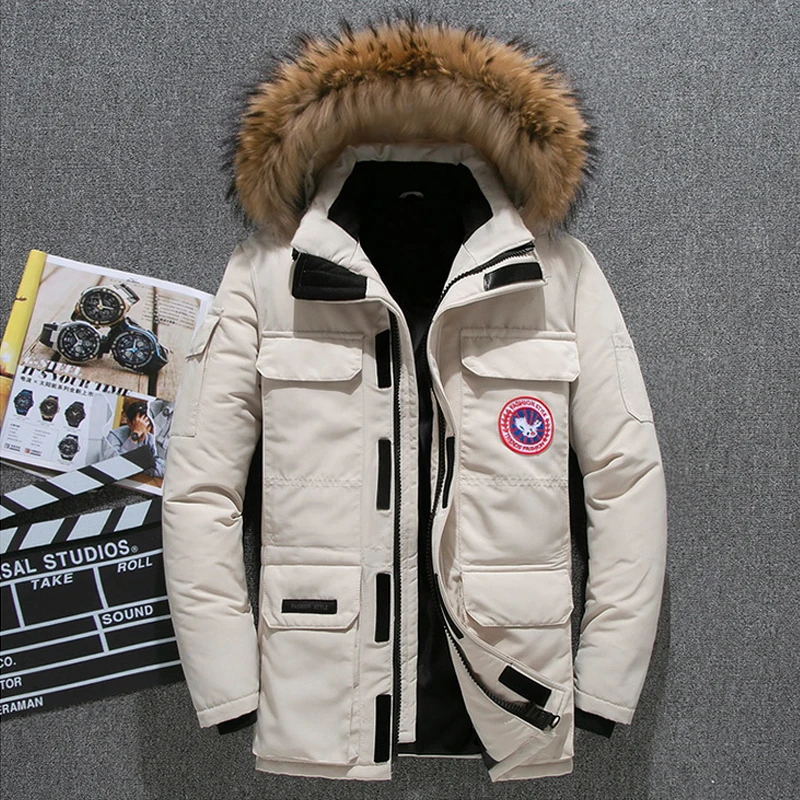 . (49% Off) Vente Hiver bas Parkas veste hommes blanc canard duvet manteau hommes épais neige Parka pardessus coupe vent longue fourrure à capuche Parkas chauds Pas Cher Prix.