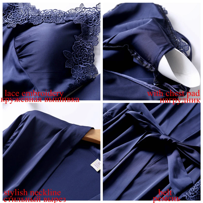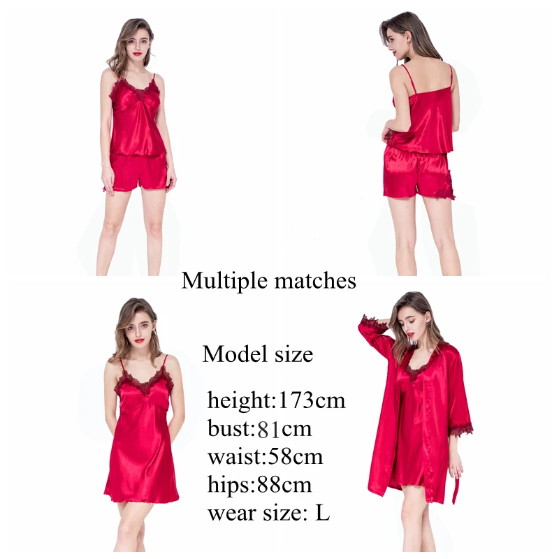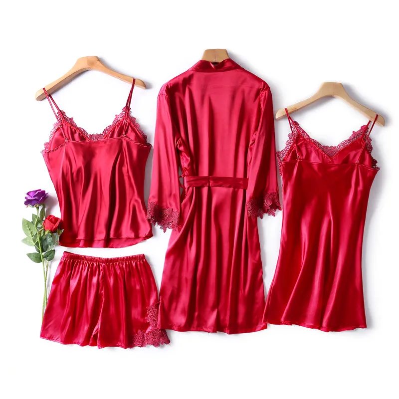 Special Offer JULY S SONG 4 pièces Sexy ensemble de pyjamas femmes fausse soie Robe de chambre dentelle fronde Shorts Robe d été vêtements de nuit avec coussinets de poitrine Discount 52% Today!