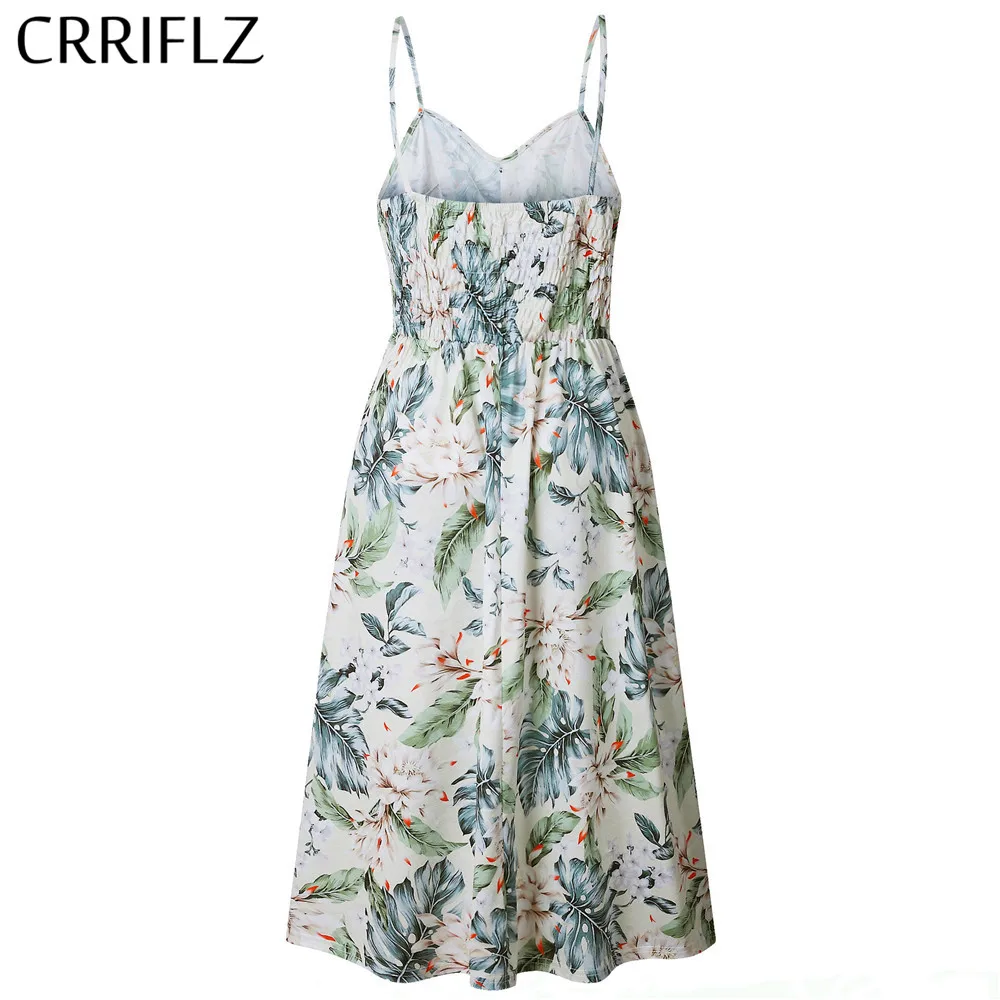 Special Offer Nouveau Boho hors épaule fête plage Sundress Spaghetti longues robes de grande taille été femmes bouton décoré robe imprimée CRRIFLZ Discount 53% Today!