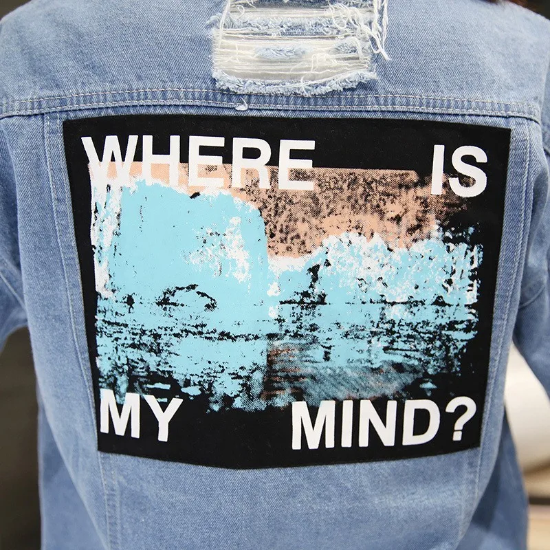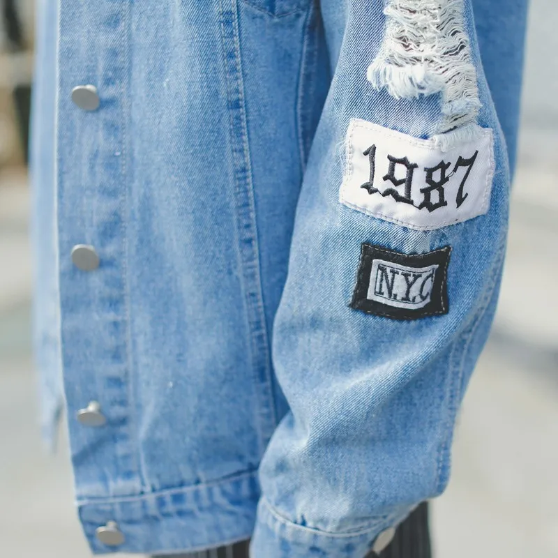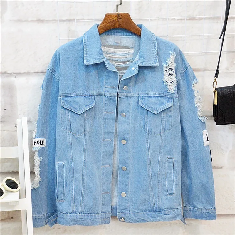 Special Offer Grande taille où est mon esprit corée Kpop effiloché lettre Patch Bomber Jeans veste femmes déchiré Denim manteau femme Streetwear Harajuku Discount 55% Today!