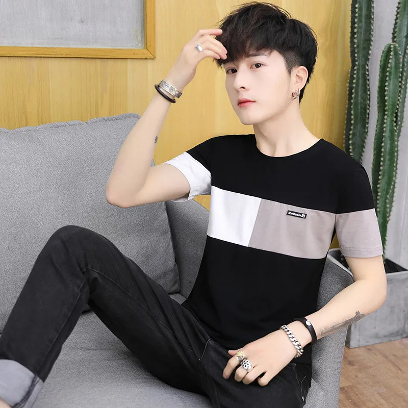 . (0% Off) Vente Belbello nouvelle mode hommes T shirt été col rond jeunesse femme chemises personnalisées hommes coupe manches rayure à manches courtes Pas Cher Prix.