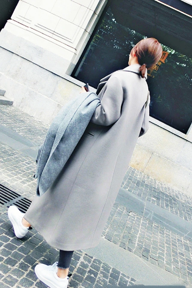 . (0% Off) Achat Femmes Manteau De Laine, 2019 Hiver Nouveau décontracté Version Coréenne Mince Manteau Long, Manches longues Col De Costume Femme grande taille Mode Manteaux Pas Cher En Ligne.