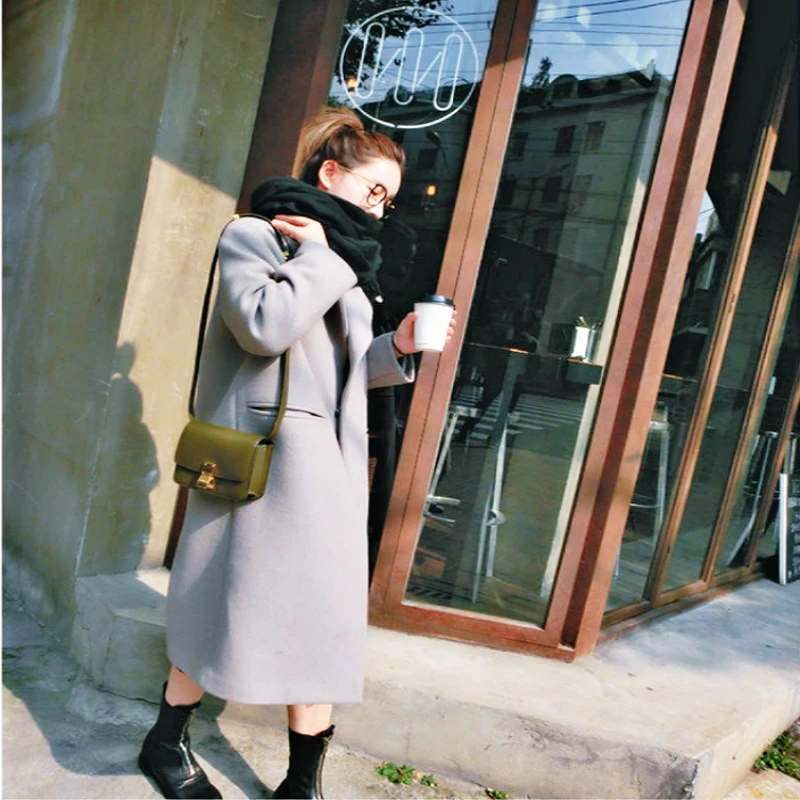 Special Offer Femmes Manteau De Laine, 2019 Hiver Nouveau décontracté Version Coréenne Mince Manteau Long, Manches longues Col De Costume Femme grande taille Mode Manteaux Discount 0% Today!