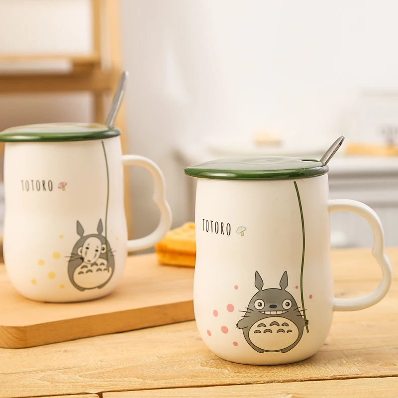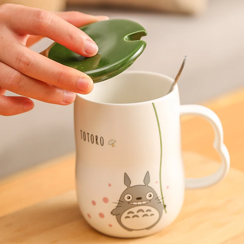 Special Offer Nouveau 280ml à la main faire des tasses en céramique avec cuillère et couverture Totoro Cartoon thème lait tasses tasse outils de cuisine Discount 15% Today!