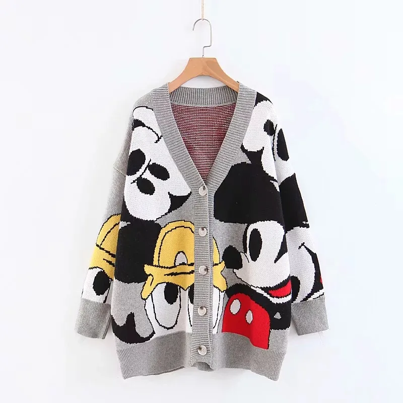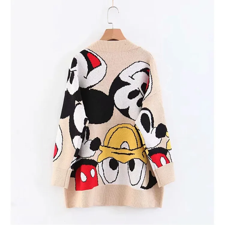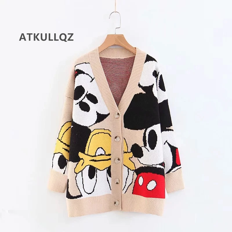 Special Offer ATKULLQZ chaud femmes tricoté veste en gros 2019 automne et hiver nouveau ins chaud paresseux vent col en v Mickey pull Cardigan femme Discount 25% Today!