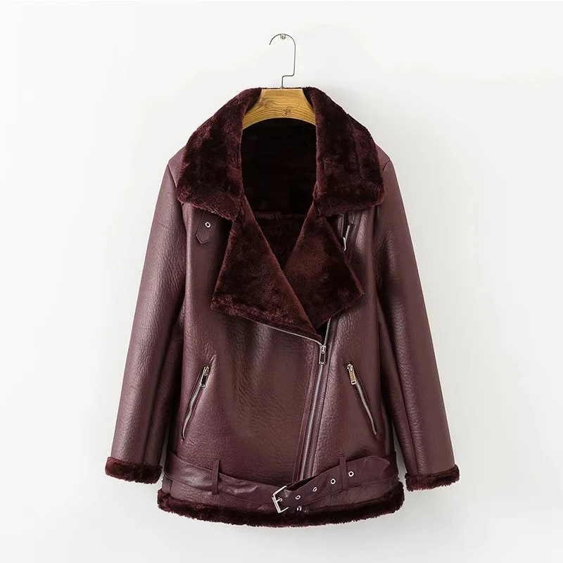 Special Offer FTLZZ 2019 nouveau hiver femmes en peau de mouton manteaux épaissir Faux cuir fourrure femme manteau fourrure doublure en cuir veste aviateur veste Discount 29% Today!