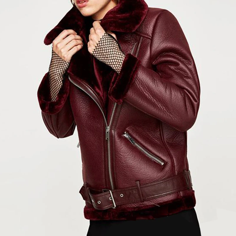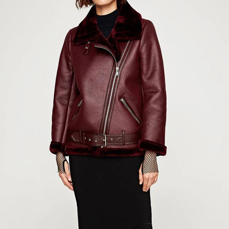 . (29% Off) Achat FTLZZ 2019 nouveau hiver femmes en peau de mouton manteaux épaissir Faux cuir fourrure femme manteau fourrure doublure en cuir veste aviateur veste Pas Cher En Ligne.