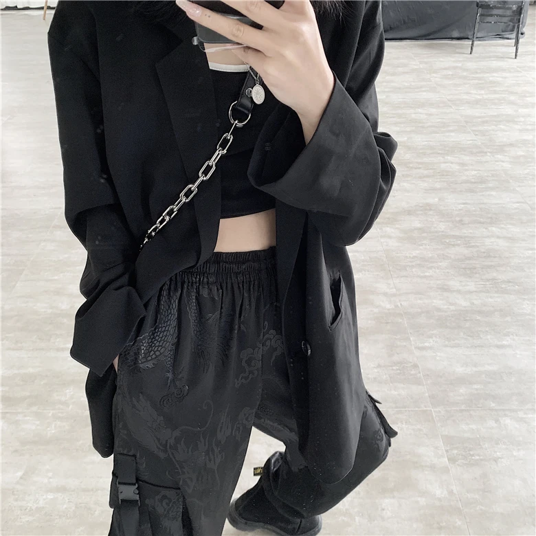 Special Offer Harajuku Dragon broderie pantalon Cargo doux femmes poche latérale Rock lâche taille élastique pantalon femme Discount 30% Today!