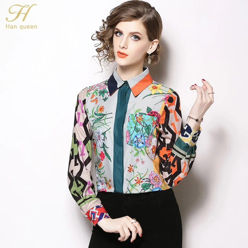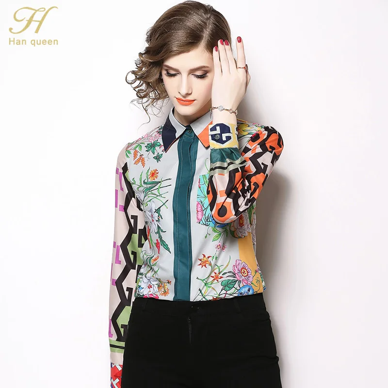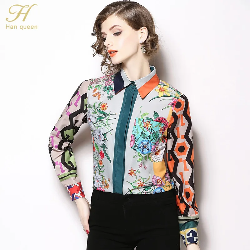 Special Offer H Han Queen femmes Vintage imprimé floral dames hauts en mousseline de soie à manches longues blouse décontractée femme travail porter des chemises de bureau Discount 32% Today!