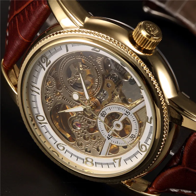 Special Offer Hommes montres de luxe or squelette mécanique Steampunk mâle horloge automatique montre bracelet bracelet en cuir Herren Horloges Discount 34% Today!