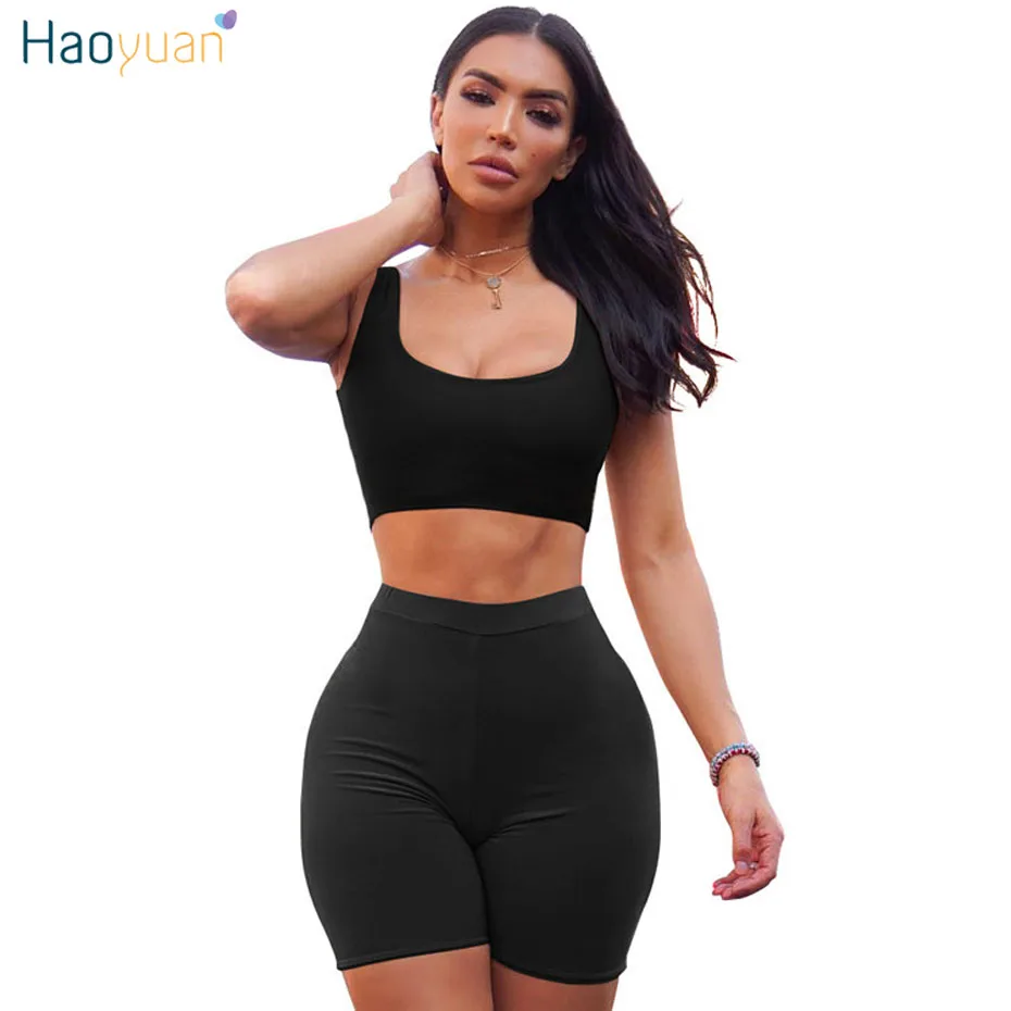 Special Offer HAOYUAN 2 pièces ensemble femmes Festival vêtements haut court Biker Shorts Sweat costume Sexy Club tenues deux pièces survêtement ensembles assortis Discount 35% Today!