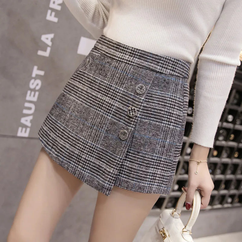 Special Offer Hiver épaissir les shorts en laine femmes automne taille haute plaid shorts jupes élégant large jambe irrégulière dames bureau travail shorts Discount 40% Today!