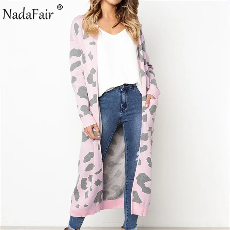 Special Offer Nadafair Long tricoté léopard Cardigan femmes grande taille décontracté tricot hiver surdimensionné Cardigan chandail automne manteau Pull Femme Discount 45% Today!