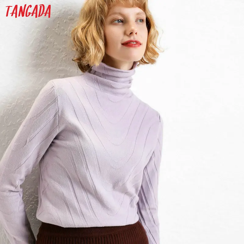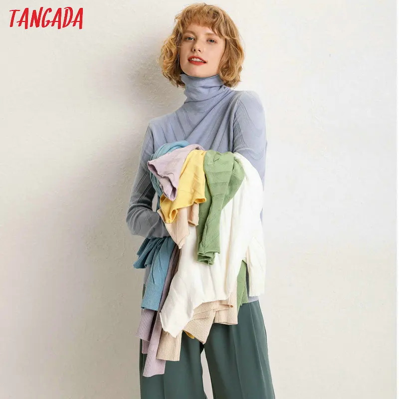 Special Offer Tangada haute qualité pull à col roulé femmes 2019 automne hiver épais pull solide tricoté pull pile col pull AQJ06 Discount 45% Today!