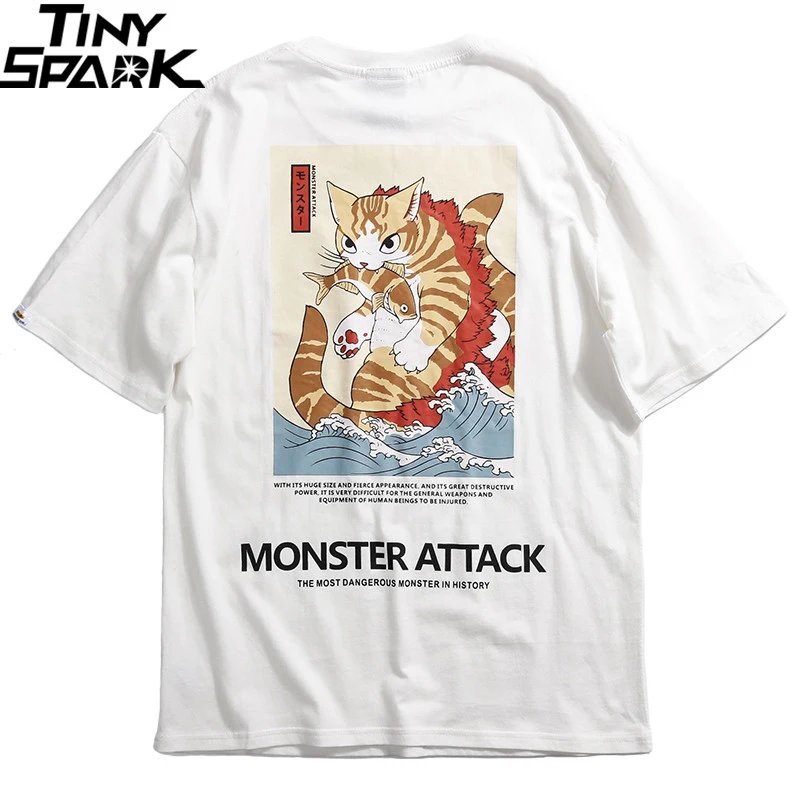 . (46% Off) Vente 2019 hommes Hip Hop t shirt Streetwear monstre chat T Shirts Harajuku japon Style drôle t shirt été à manches courtes couverture en coton T Shirts Pas Cher Prix.