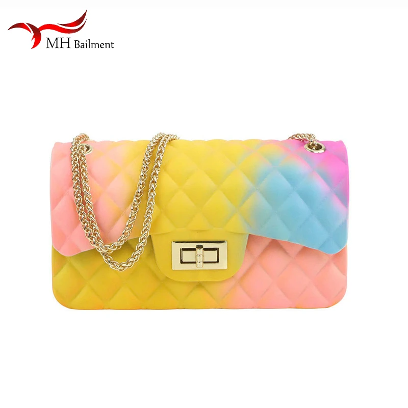 Special Offer Colorfur gelée chaîne épaule diagonale femme sac été couleur correspondant sac à main avec fourrure pantoufles combinaison mode sac femme Discount 50% Today!