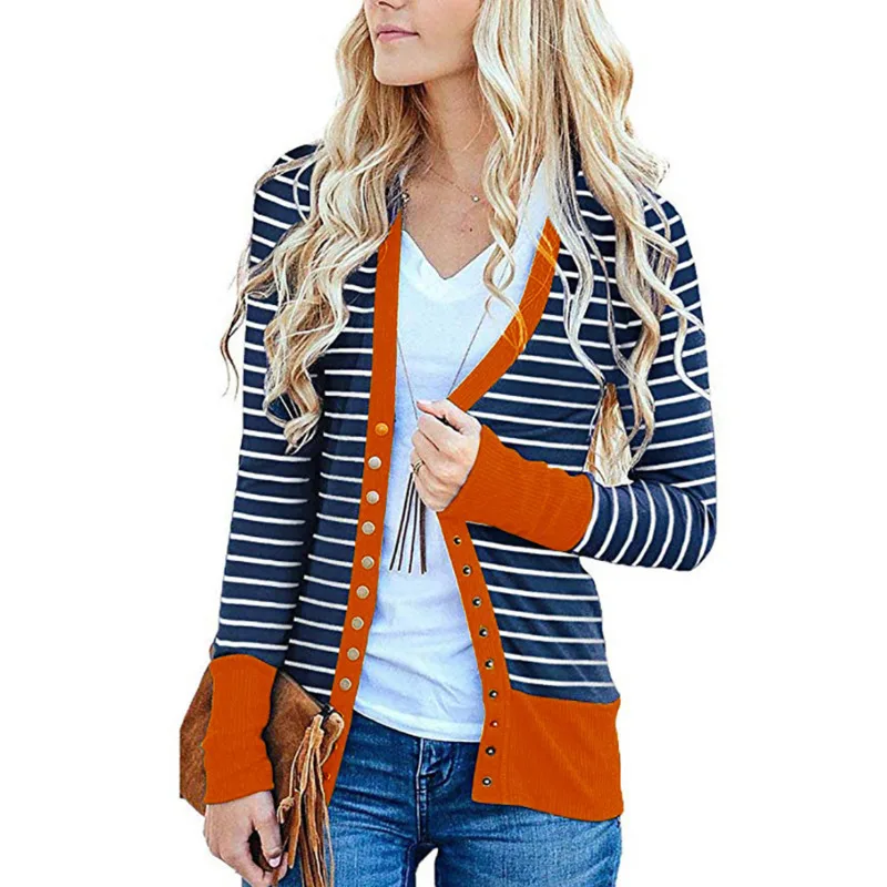 Special Offer Cardigan rayé femmes à manches longues col en V bouton tricoté Cardigan surdimensionné Mujer 2019 printemps automne femme manteau Kardigan jaune Discount 50% Today!