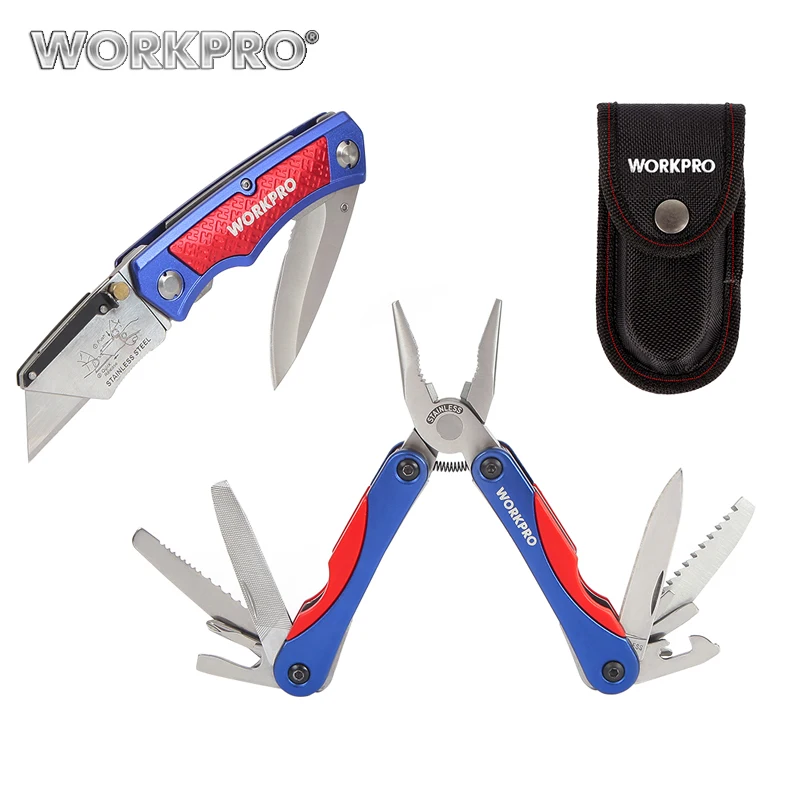 . (50% Off) Vente Couteau utilitaire WORKPRO couteau double lame 15 en 1 multi pinces 2PC ensemble d outils de Camping en plein air Pas Cher Prix.
