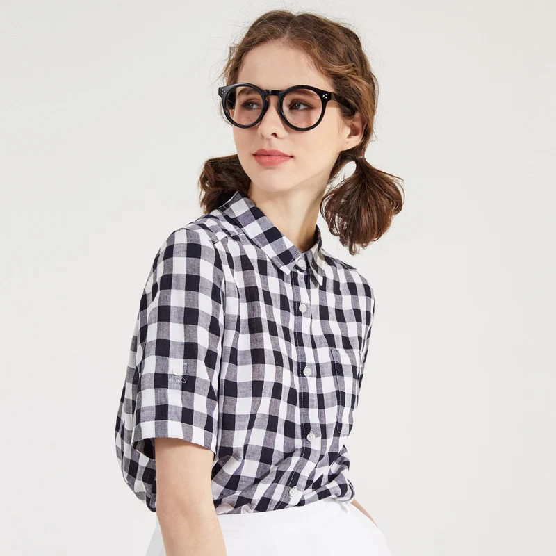 Special Offer Metersbonwe 2019 nouveau été à manches courtes chemise femmes Blouse basique chemise à carreaux Joker ligne Led Hong Kong Style été Blouse Discount 52% Today!