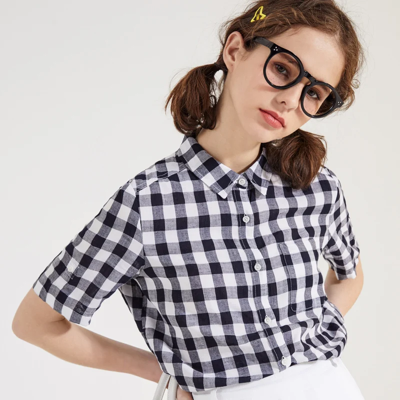 . (52% Off) Achat Metersbonwe 2019 nouveau été à manches courtes chemise femmes Blouse basique chemise à carreaux Joker ligne Led Hong Kong Style été Blouse Pas Cher Prix.