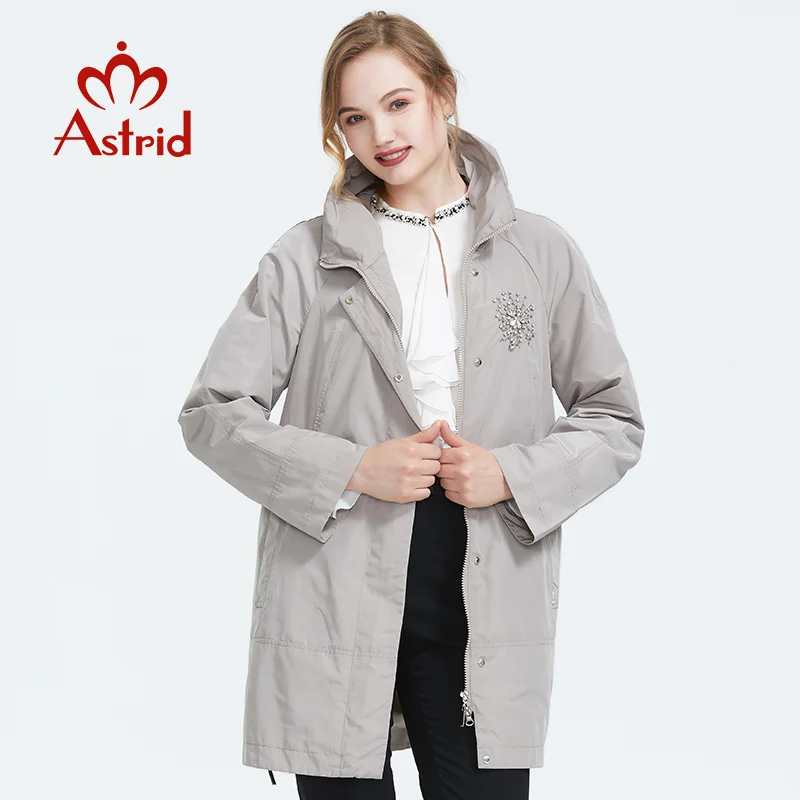Special Offer Astrid 2019 automne nouveauté haut gris trench manteau col montant mi longueur femmes lâches mode trench manteau avec fermeture éclair AS 9116 Discount 60% Today!