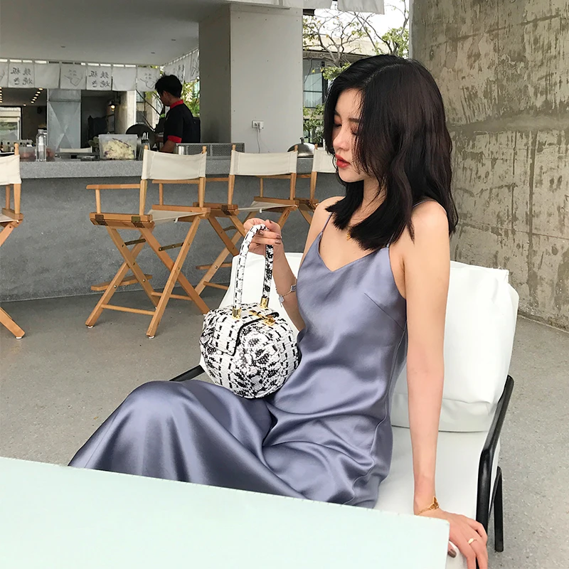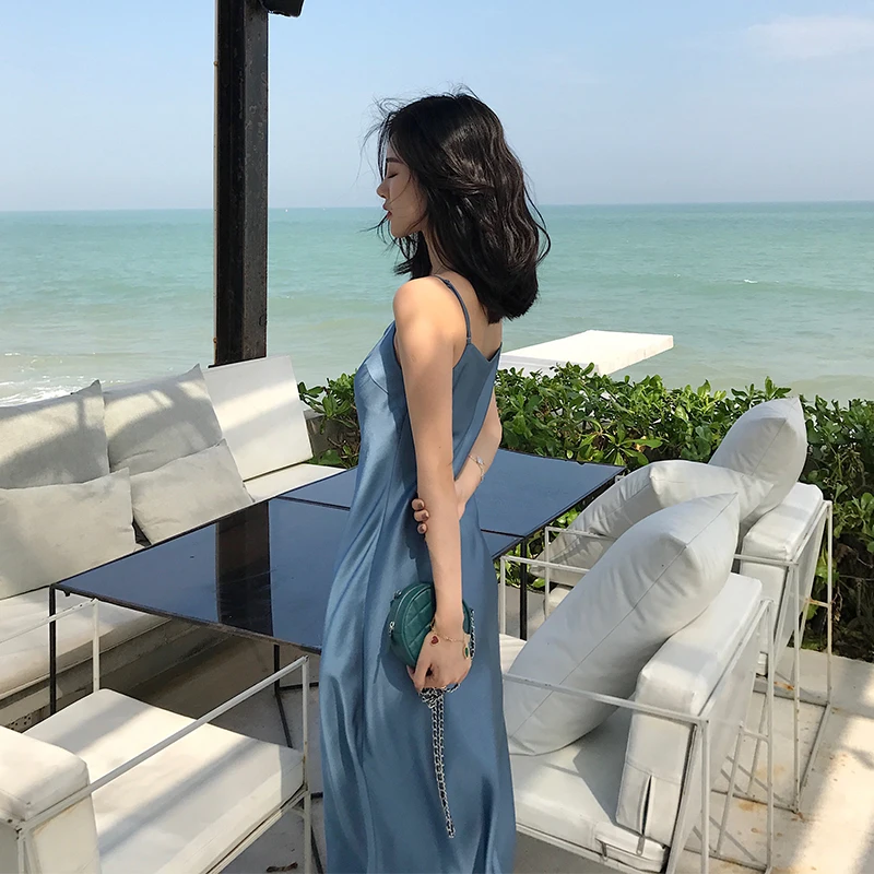 Special Offer Été femmes dos nu Sexy glace soie lisse sangle décontracté couleur unie sans manches plage fête robe de Club Discount 25% Today!