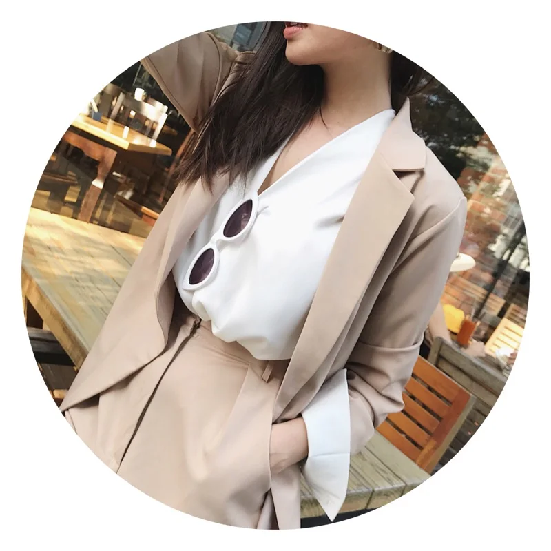Special Offer Col en v profond femmes chemise couleur Pure hauts automne été printemps femme à manches longues élégant bureau dame Blouse Discount 25% Today!