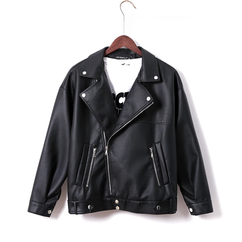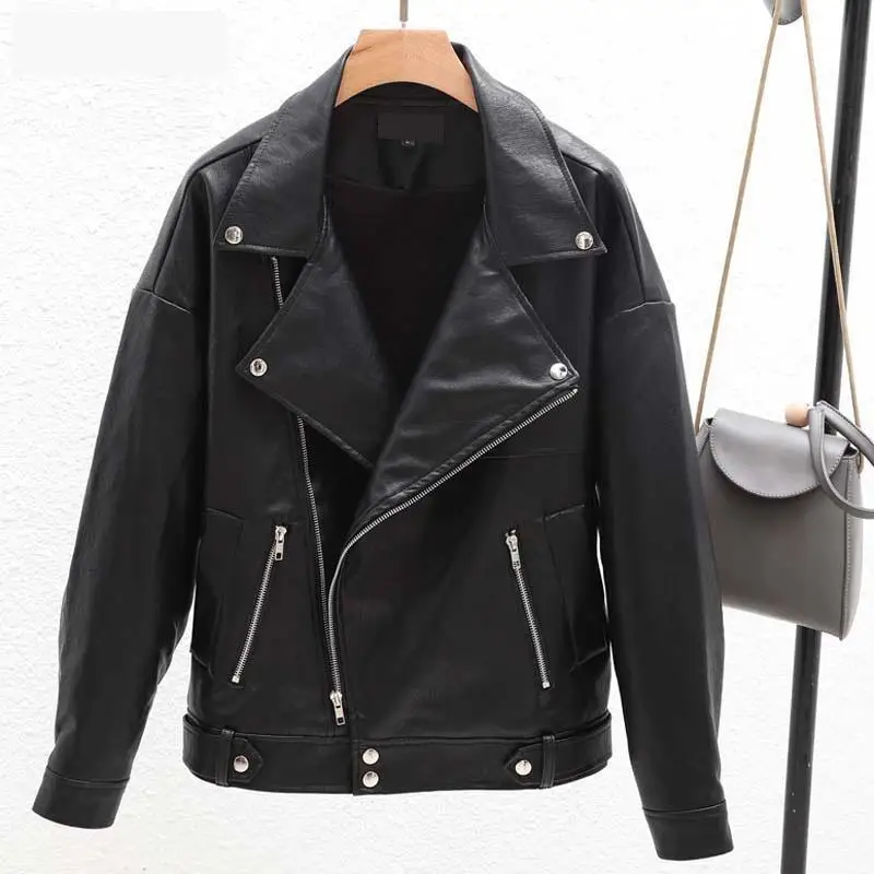 Special Offer Fitaylor automne femmes Pu cuir veste Rivet fermeture éclair col rabattu lâche noir court Faux cuir Punk vestes Discount 30% Today!