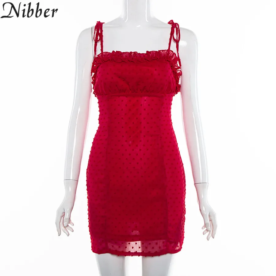 Special Offer Nibber rouge à volants sexy été vacances femmes mini robe épaule dénudée à lacets décontracté maison vêtements courte plage club mini robe dot Discount 40% Today!