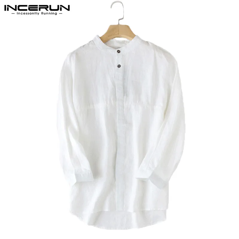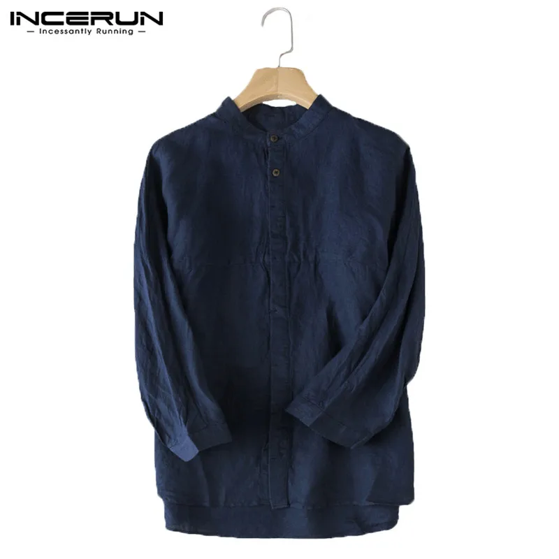 Special Offer Vintage hommes chemise col montant 3 4 manches bouton coton lin couleur unie Blouse Style chinois loisirs hommes dessus de chemise INCERUN Discount 40% Today!