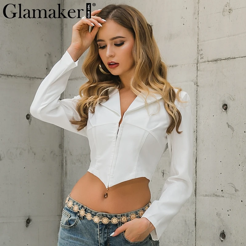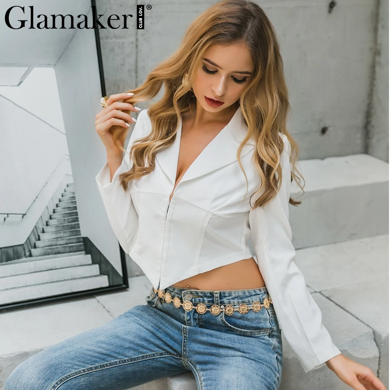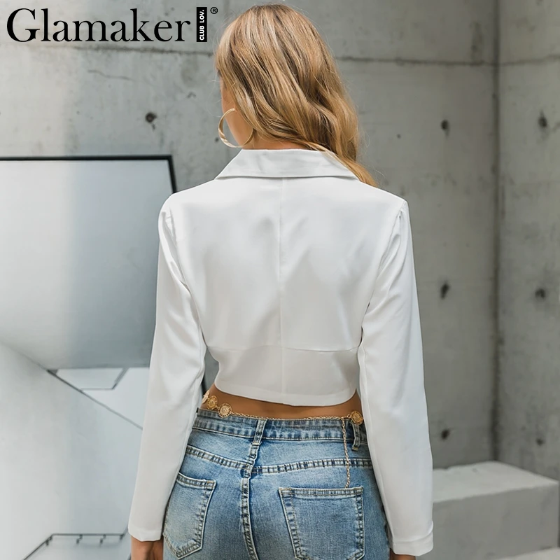 Special Offer Glamaker Sexy col en v bureau blanc mince Blazer automne élégant veste courte femmes automne crop veste manteau blazer femme vêtement extérieur Discount 40% Today!